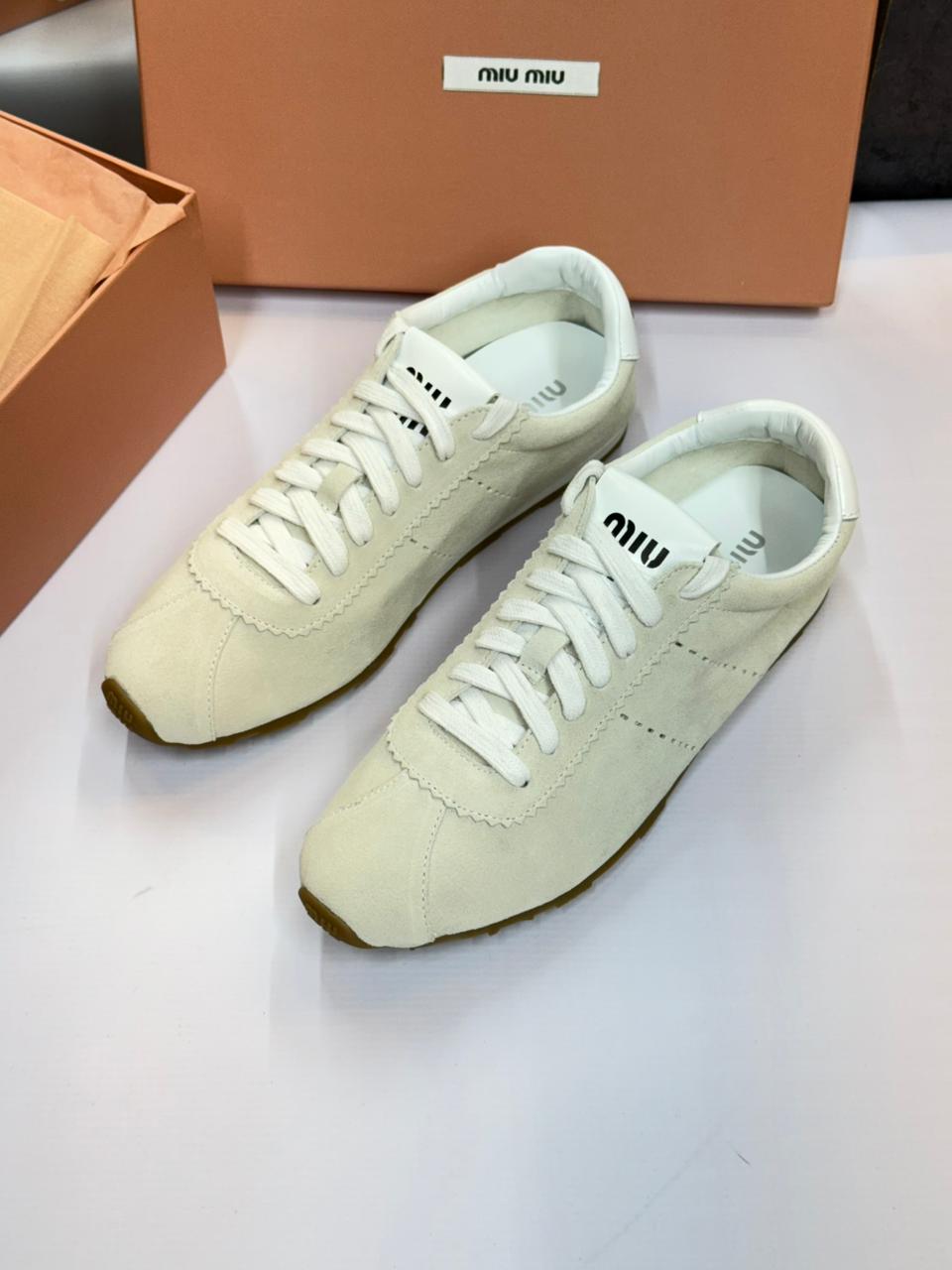 حذاء رياضي عملي من الشمواه سوار وانيق مزود بربط للإغلاق مع شعار العلامة التجارية ميو ميو