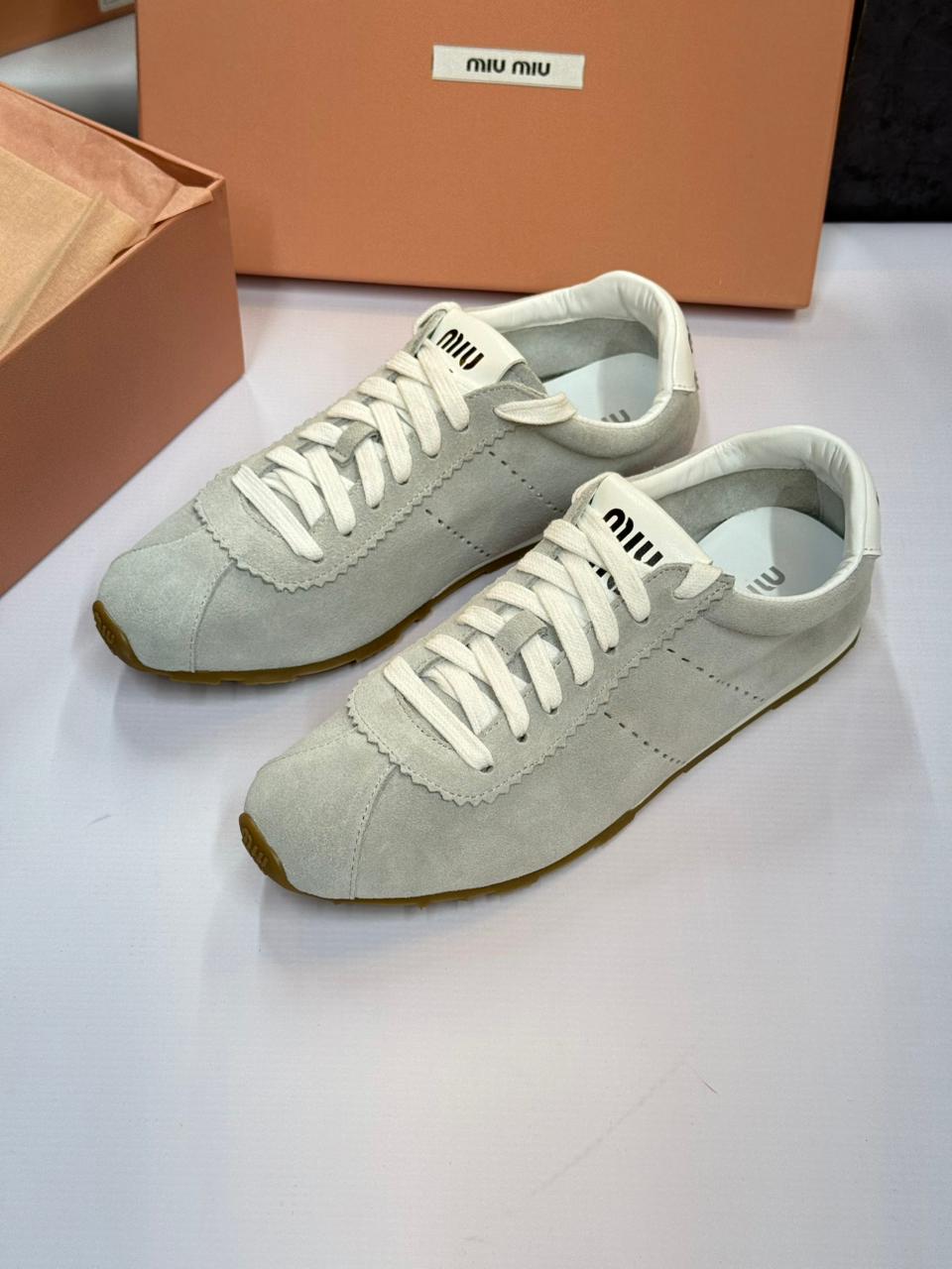 حذاء رياضي عملي من الشمواه سوار وانيق مزود بربط للإغلاق مع شعار العلامة التجارية ميو ميو